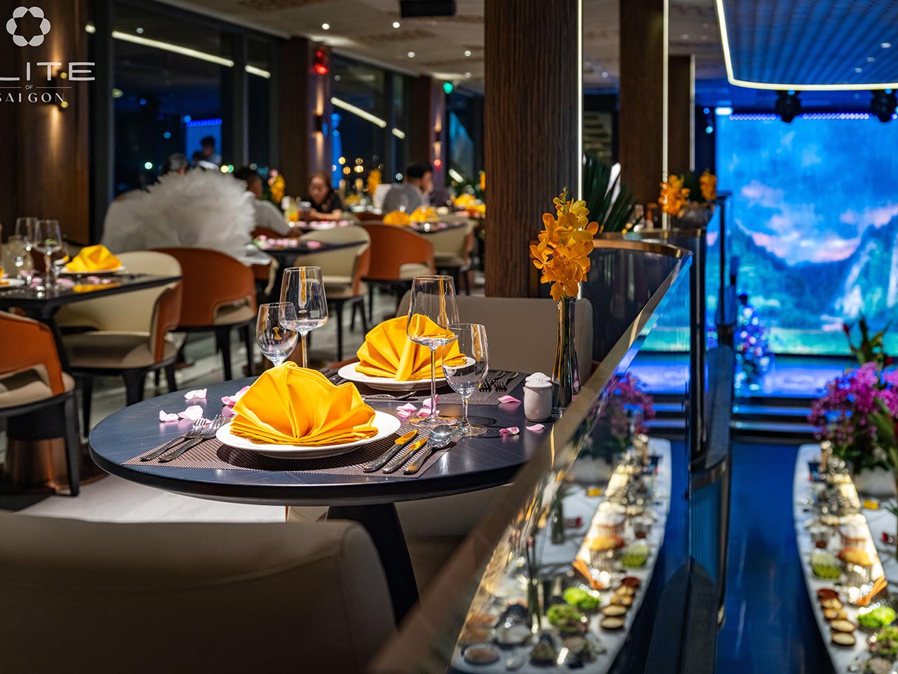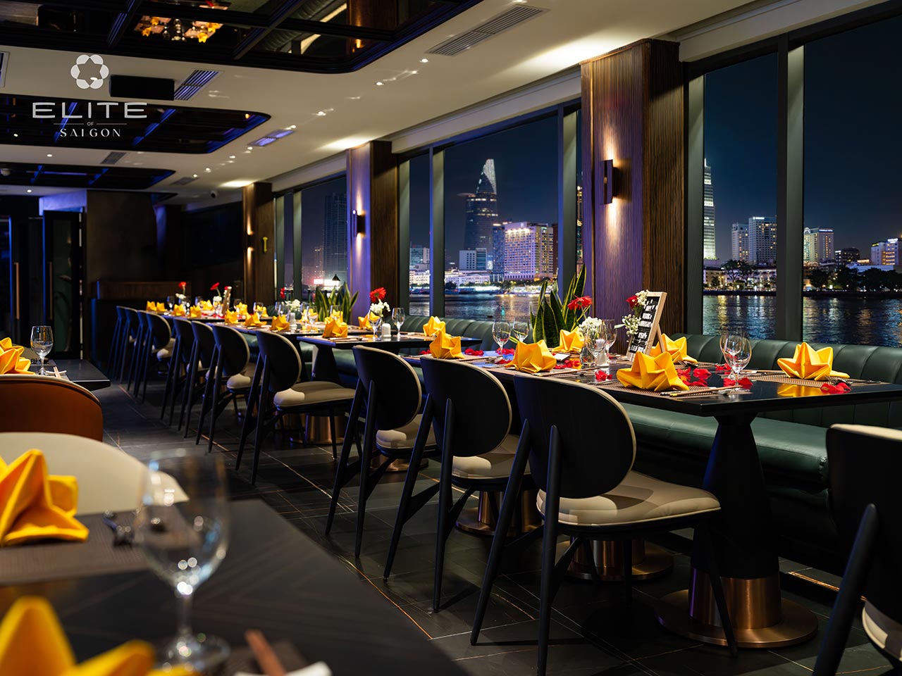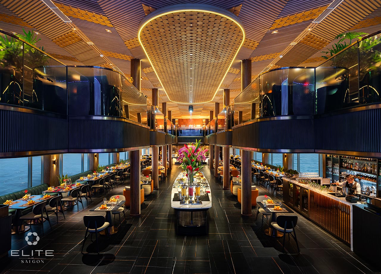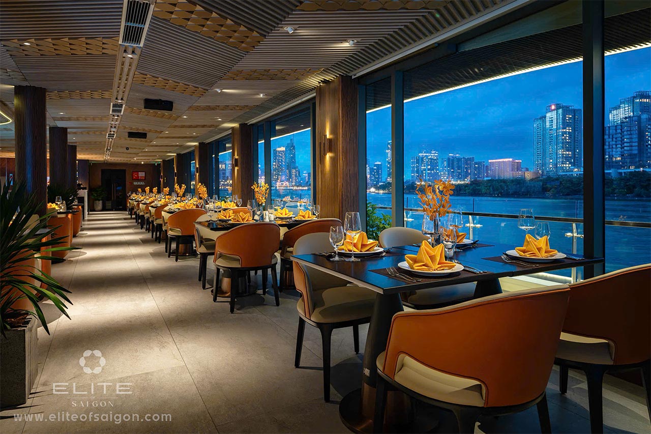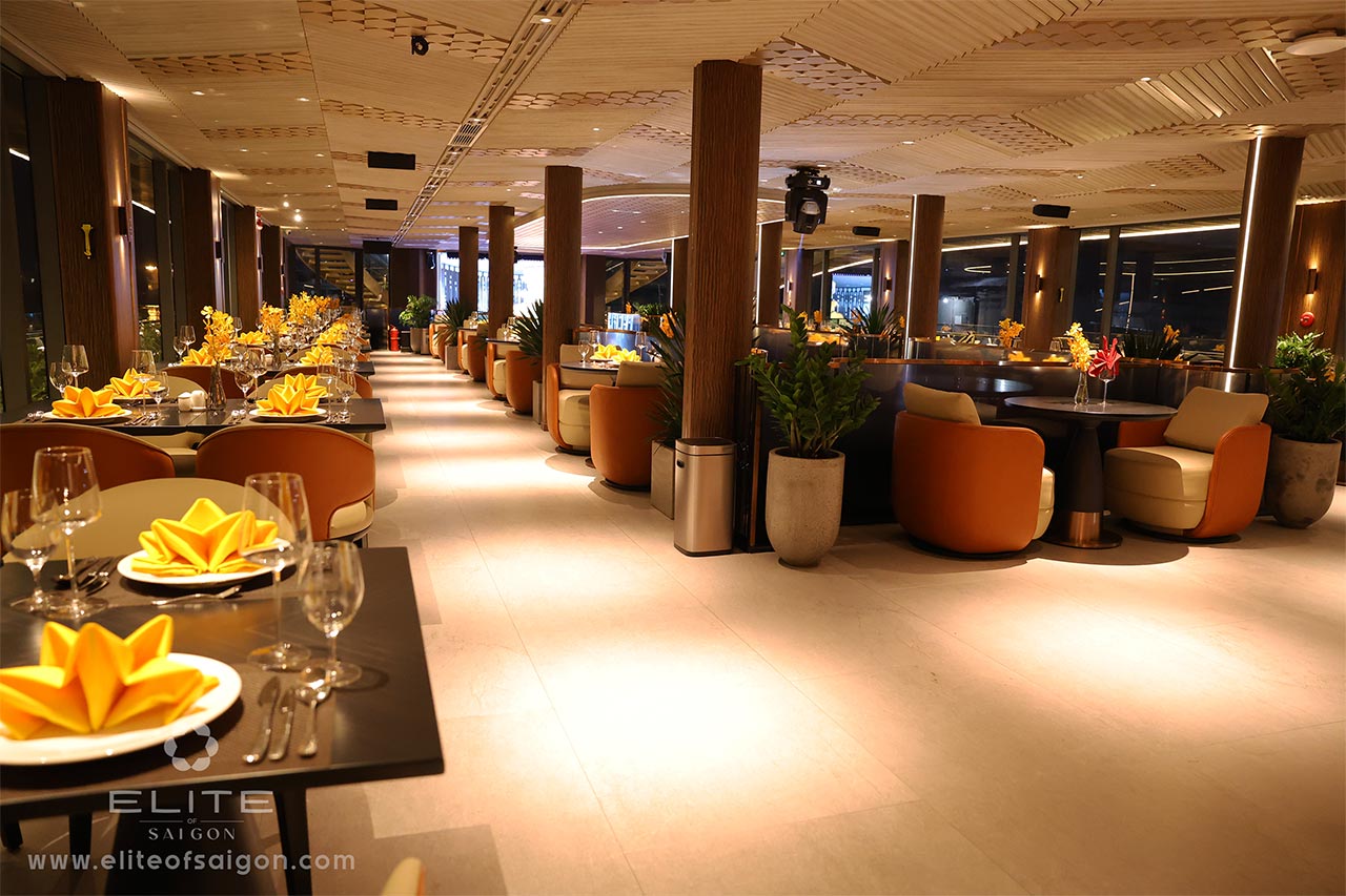 As the city lights shimmer upon the Saigon River, Elite of Saigon emerges as a masterpiece that unites the essence of refined gastronomy. Designed across three contemporary decks with a capacity of up to 500 guests, it offers the perfect setting to indulge in world-class dining entwined with captivating entertainment. Allow us to take you on a journey of emotions and flavors, creating unforgettable moments while embracing the radiant beauty of the city from a truly panoramic perspective.