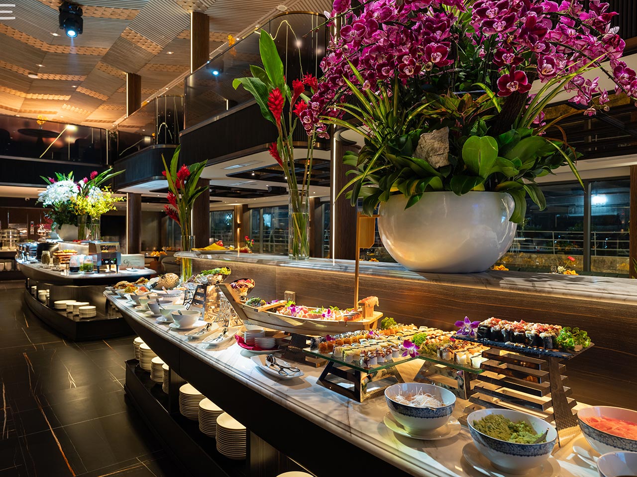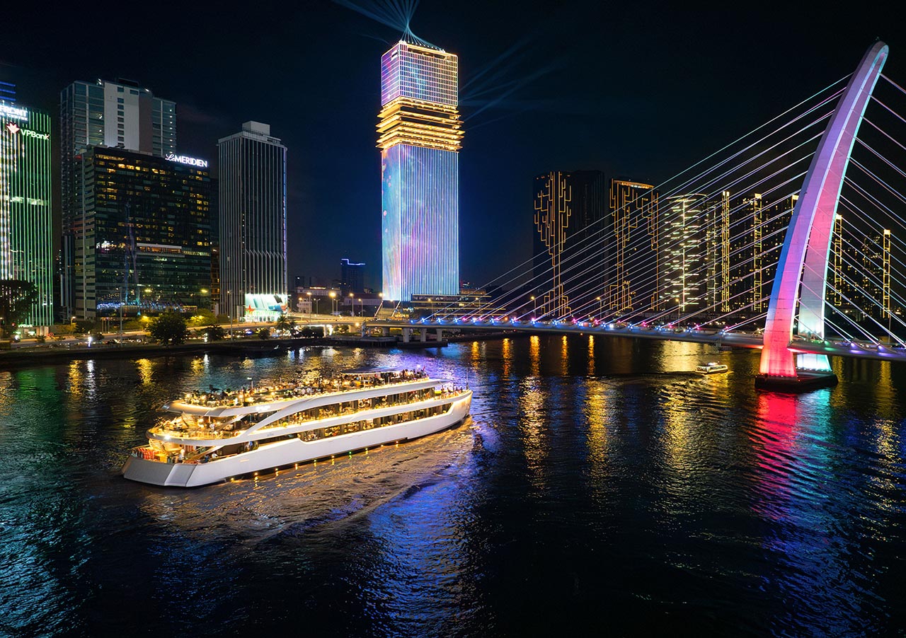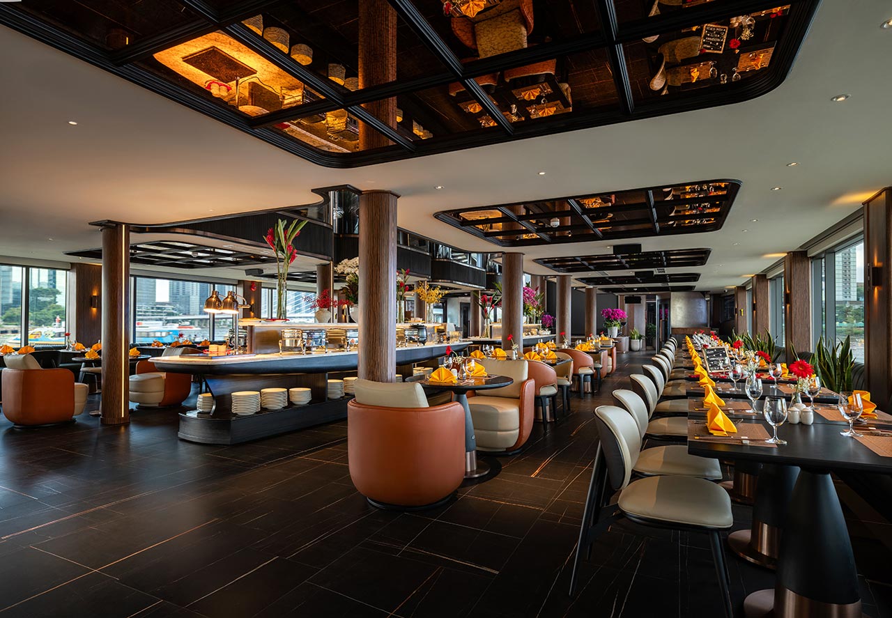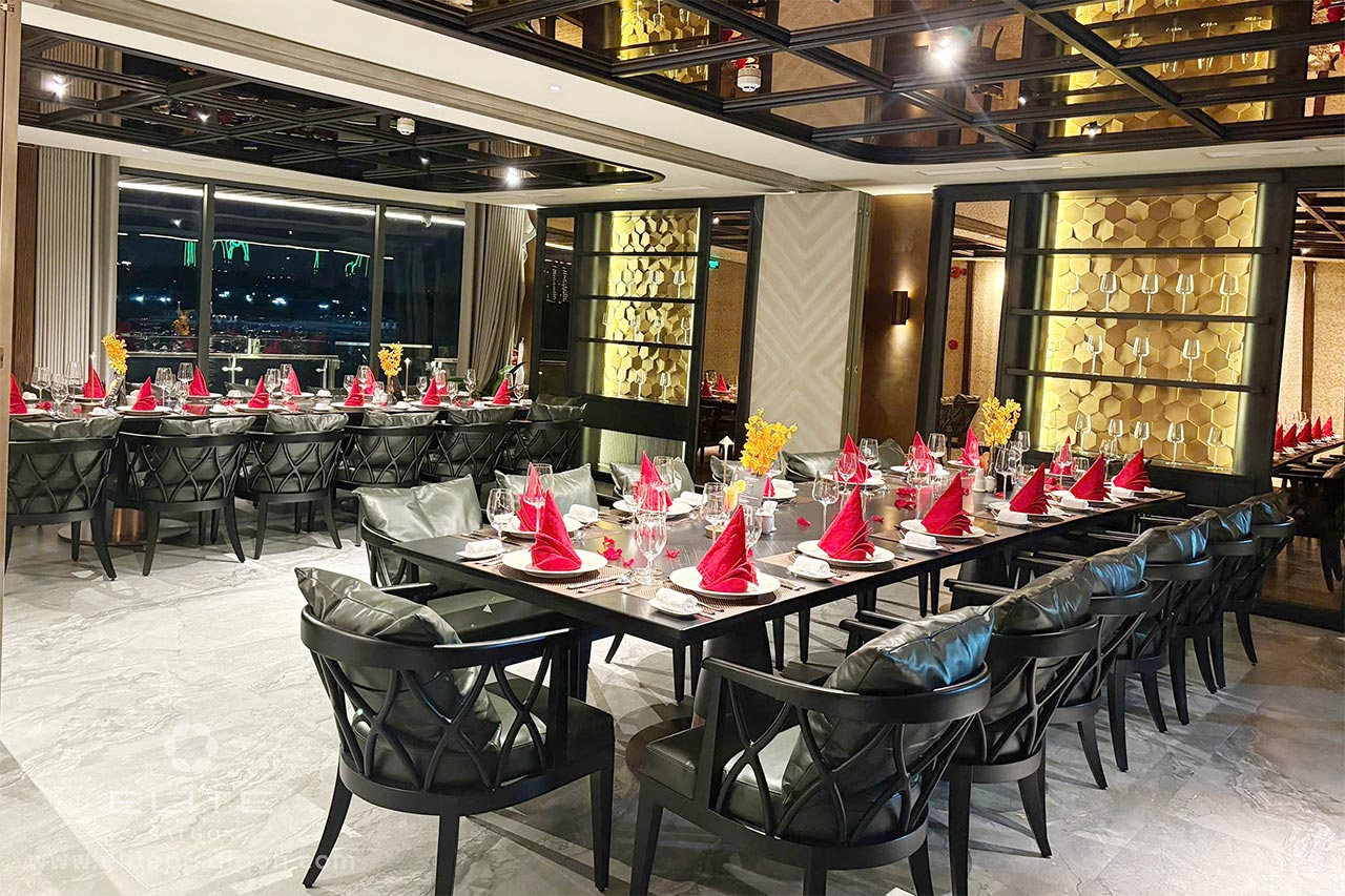 As the city lights shimmer upon the Saigon River, Elite of Saigon emerges as a masterpiece that unites the essence of refined gastronomy. Designed across three contemporary decks with a capacity of up to 500 guests, it offers the perfect setting to indulge in world-class dining entwined with captivating entertainment. Allow us to take you on a journey of emotions and flavors, creating unforgettable moments while embracing the radiant beauty of the city from a truly panoramic perspective.